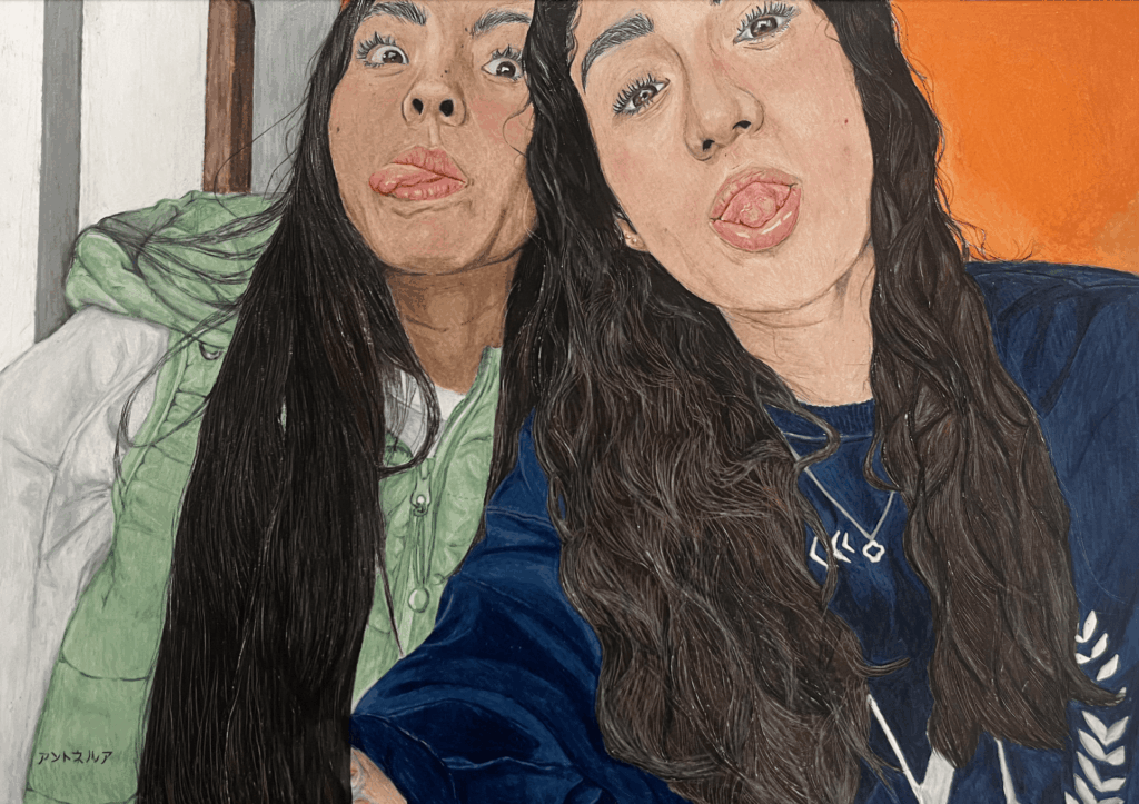 Este retrato a colores celebra la amistad auténtica entre dos amigas, capturando no solo sus rostros, sino también la complicidad y alegría que las une. Pintado con colores vibrantes, representa mi primer intento de retratar personas a color, un desafío emocionante que me permitió explorar nuevas técnicas y expresar emociones a través del arte. Esta obra inmortaliza un vínculo especial y marca el comienzo de un viaje creativo lleno de aprendizaje y pasión.