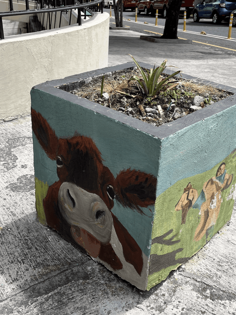 Esta imagen captura una expresión artística única en plena floresta: una vaca pintada con acrílicos sobre una roca, fusionando la creatividad humana con la naturaleza. El contraste entre la superficie rugosa de la piedra y los vivos colores del dibujo resalta la interacción entre arte y entorno natural. Esta obra invita a detenerse y apreciar cómo el arte puede surgir en los lugares más inesperados, celebrando la belleza y diversidad que la floresta nos ofrece.